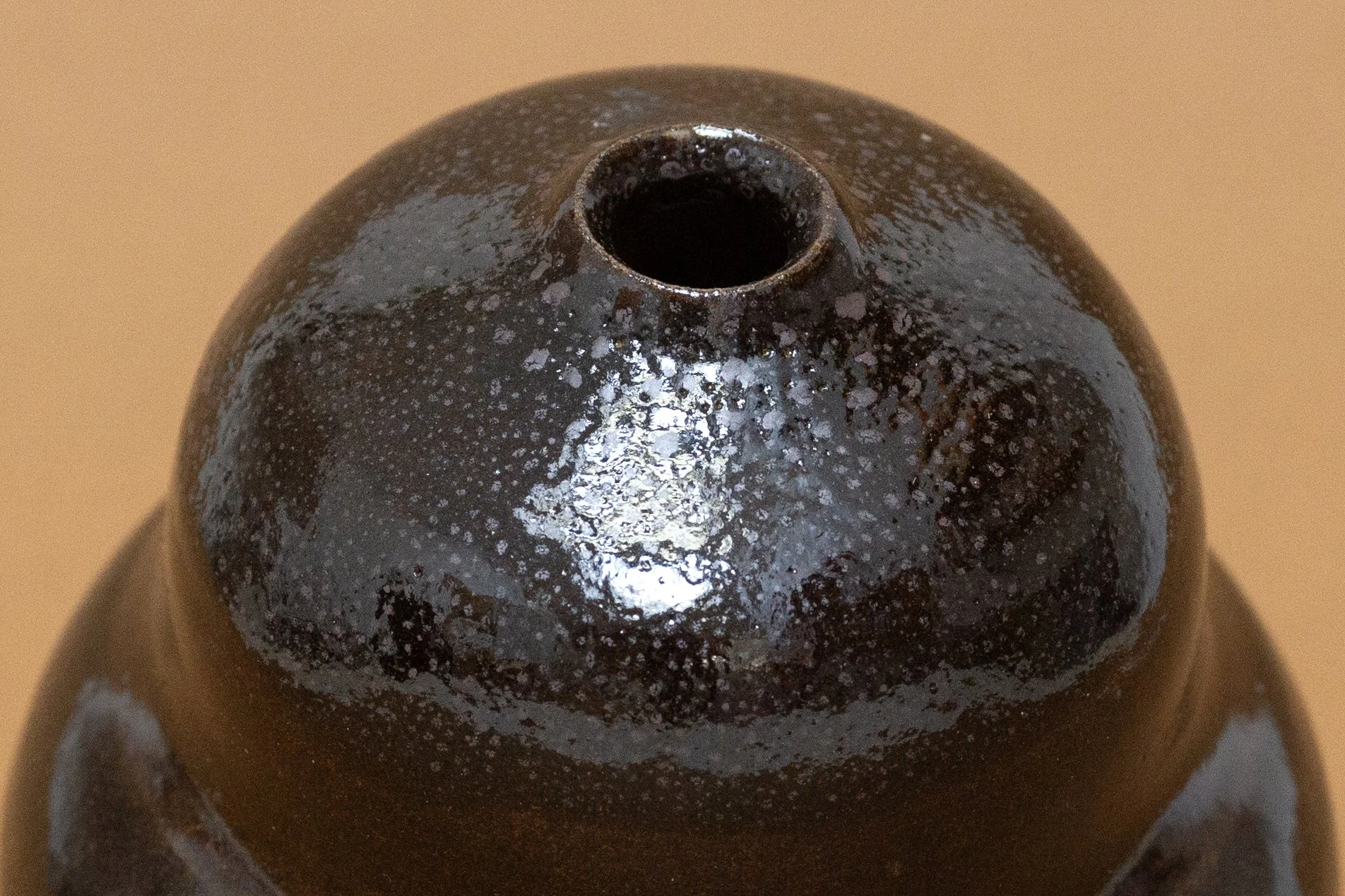 Après plusieurs essais, voici mon nouvel email Temmoku “goutte d’huile”, comme une sombre et profonde lumière d’hiver.